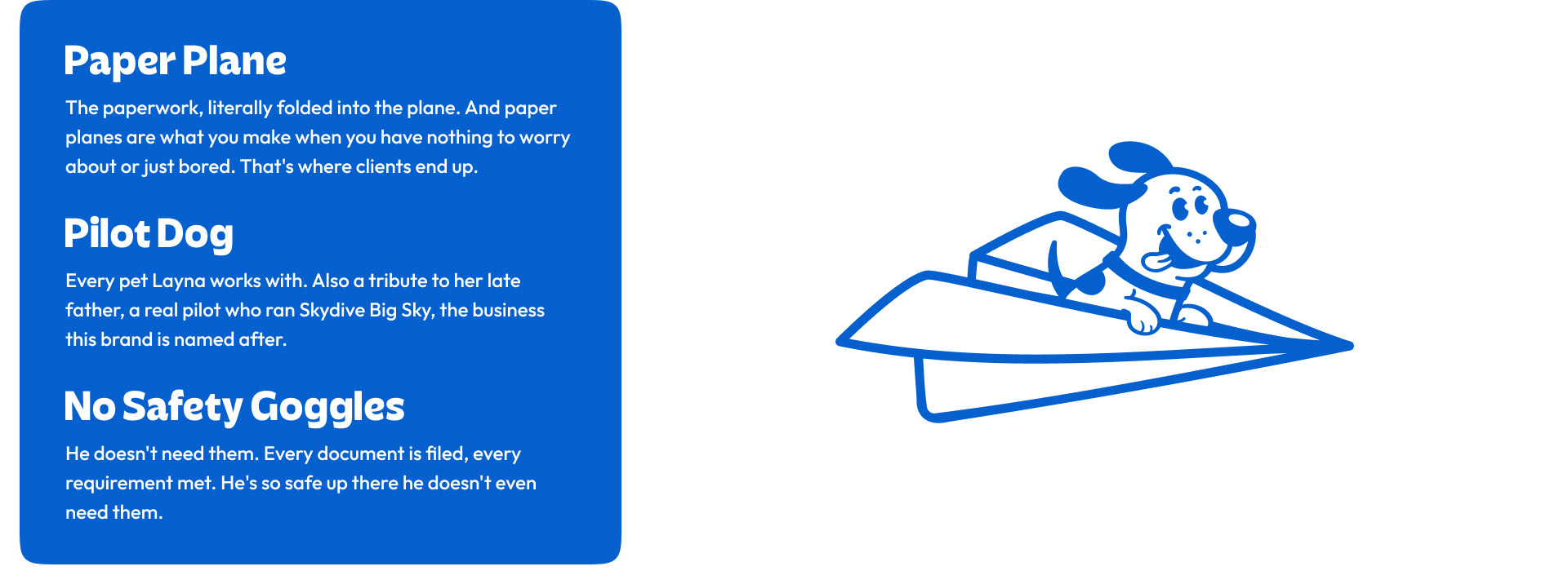 Big Sky Pet Travel is named after her home in Western Canada and her late father's skydiving company, Skydive Big Sky. He was a pilot. The name carries that.